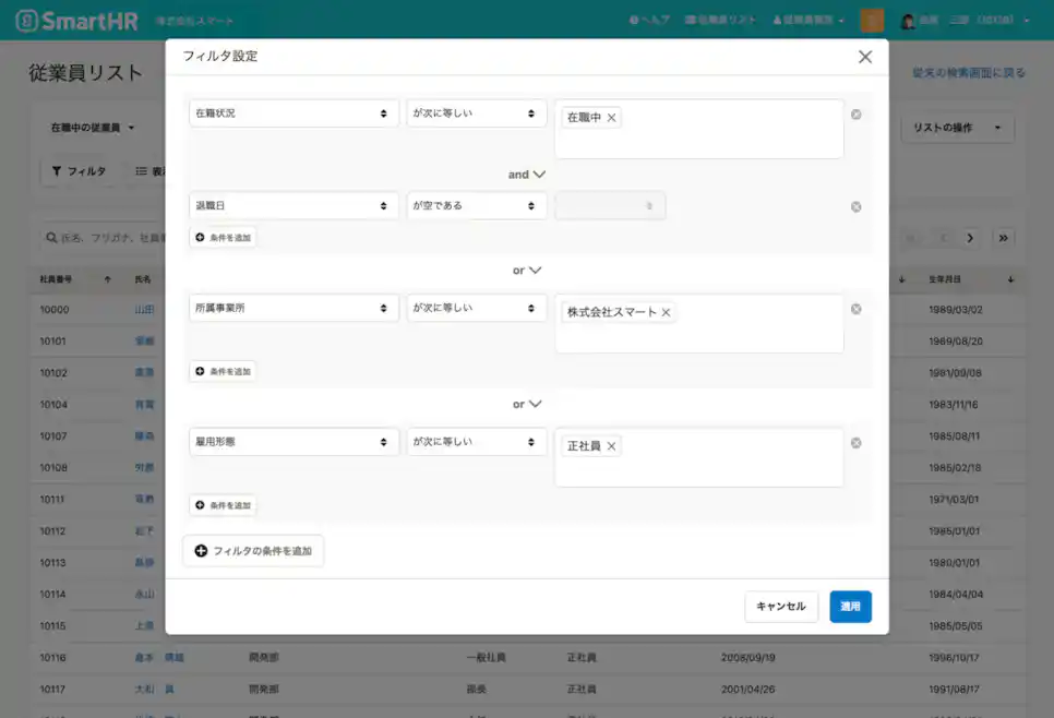 道場さん:課題だった従業員リストの作成がスムーズになりました。これまでリストの作成には3時間ほど要していましたが、SmartHRを使えば、欲しい情報を選び、リストをダウンロードするだけで完結するので30分で終わります。