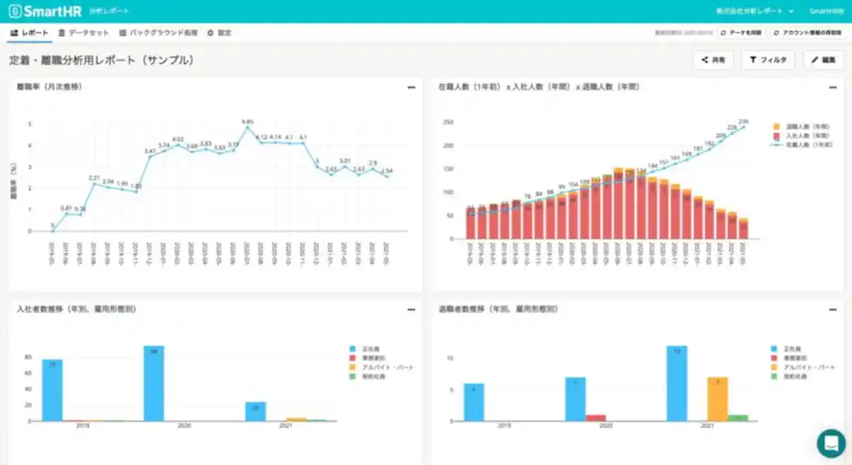 大島さん:導入当初は入退社手続きや雇用契約機能などを中心に利用していました。これらに加え、分析レポートも導入し活用することで、より良い費用対効果が出ていると感じます。また、活用の幅が広がることで、人事業務全体の効率化が進んだのではないでしょうか。SmartHRに情報が蓄積されているため、鈴木が実施している人事施策の効果測定もさらにしやすくなりますね。