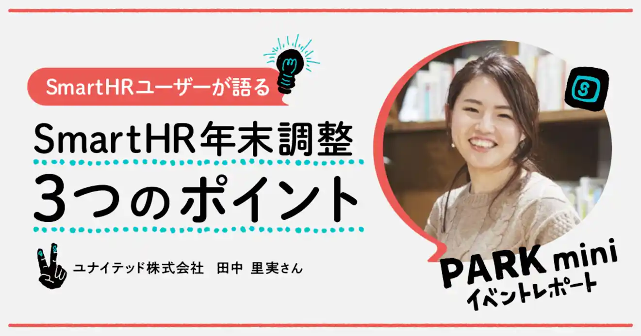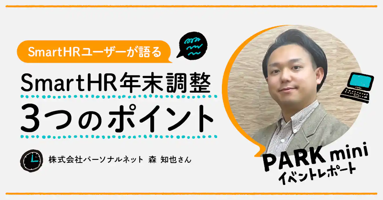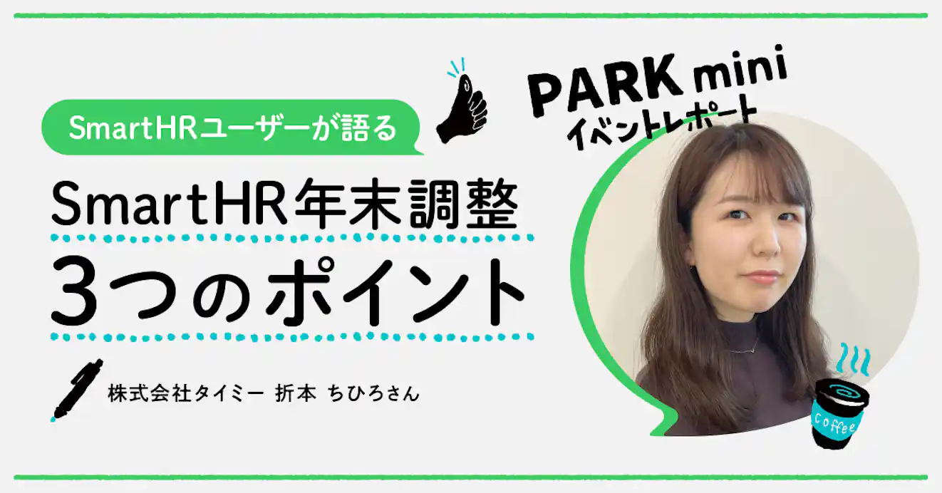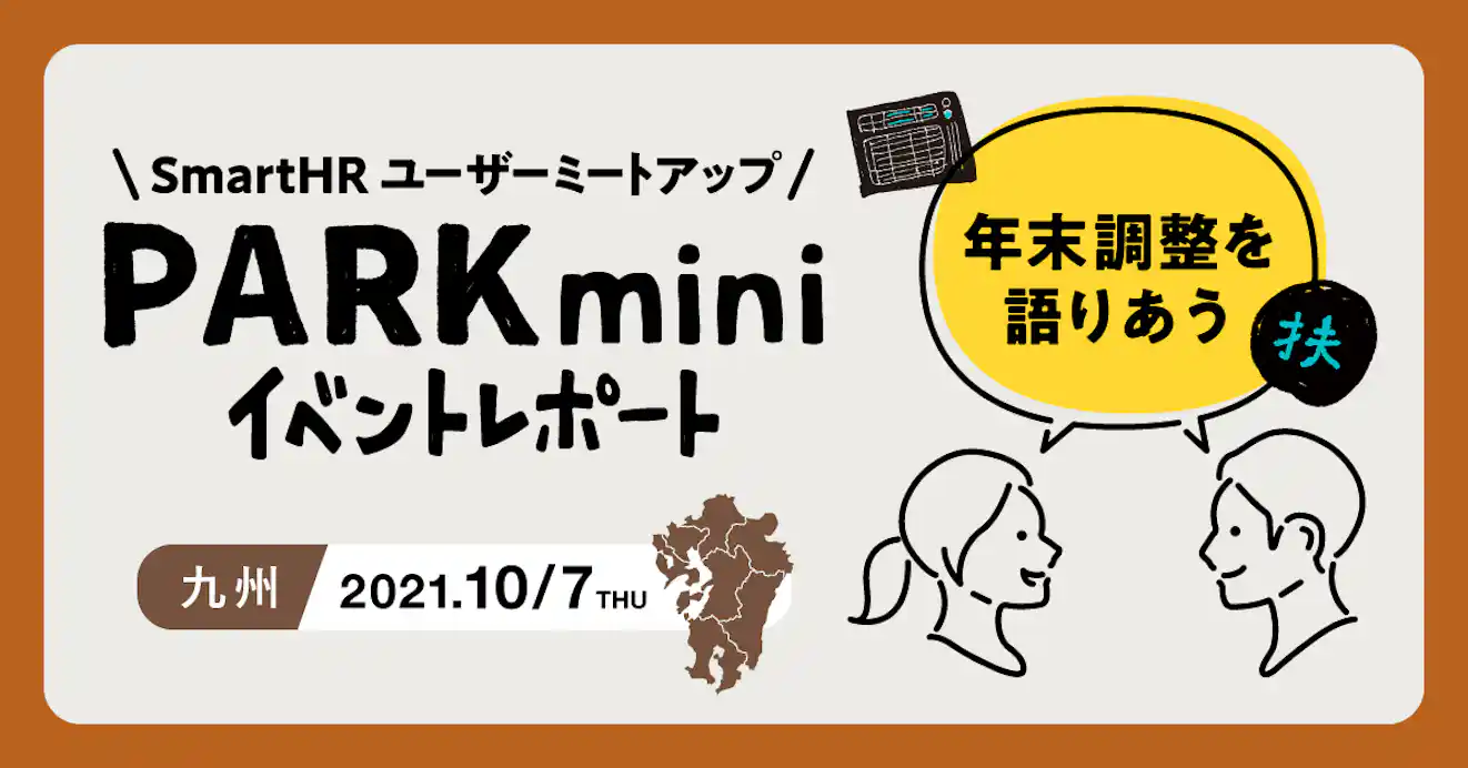 九州エリアのSmartHRユーザーがオンラインで交流した「PARK mini 九州」のイベントレポートです。今回のテーマは「年末調整」。ざっくばらんにユーザー同士で年末調整についての悩みや攻略法を語り合いました。2021/11/11