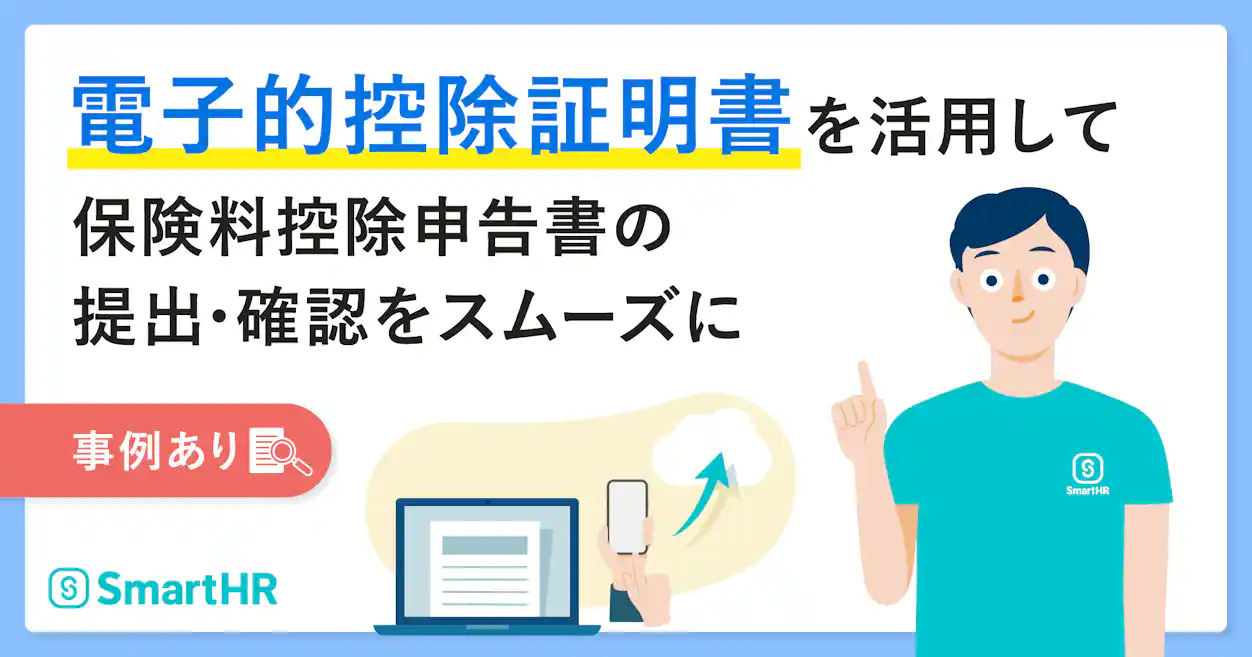 SmartHRの年末調整機能が電子的控除証明書に対応!保険料控除証明書のペーパーレス化により、従業員・労務担当者双方の業務効率化を実現します。申告作業がデータのアップロードのみで完結し、確認作業も簡素化されます。2024/10/02