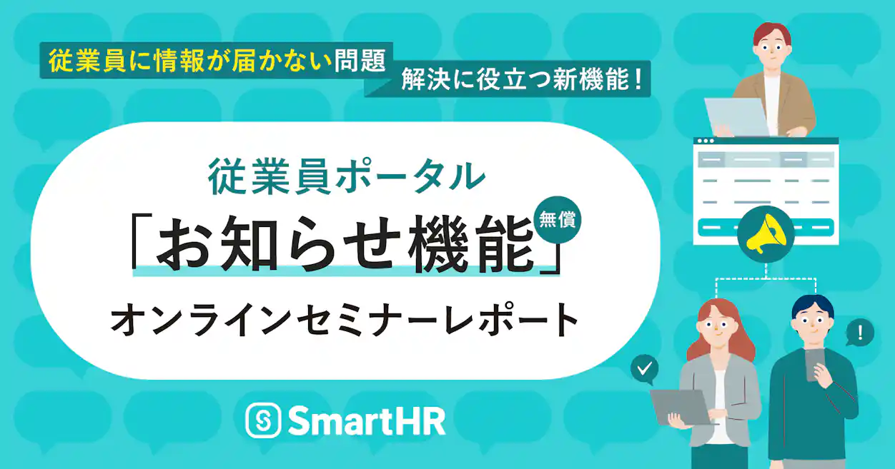 2024年11月14日、SmartHRは従業員とのコミュニケーションを円滑にする「お知らせ機能」を新たにリリースしました。お知らせ機能は、従業員に向けた情報発信における「情報が届かない問題」の解決につながる機能です。本機能について、2024年10月30日に開催された弊社主催のオンラインセミナーの内容から、お知らせ機能の概要や設定方法、活用ケースなどについて紹介します。