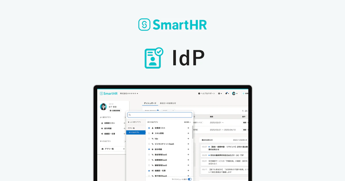 IdPとは、Identity Providerの略称。SmartHRがユーザーの認証情報を保存、管理し、他のクラウドサービスとログイン情報を連携します。アクセス管理の効率化はもちろん、従業員の利便性も向上します。