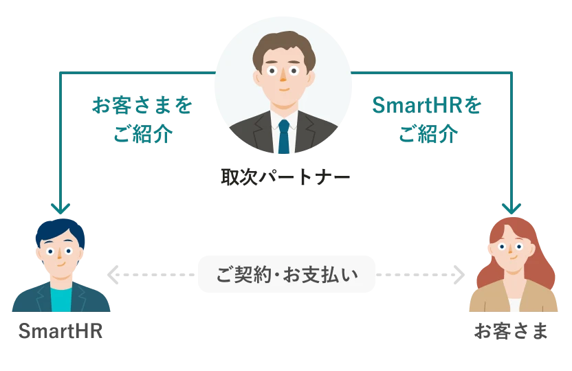 お客さまへSmartHRのサービスをご紹介いただいたのち、商談以降はSmartHRが対応いたします。